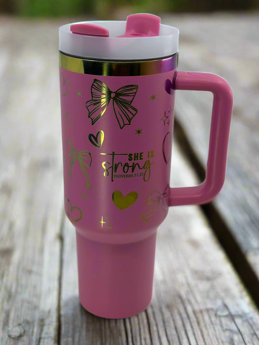 40oz Tumbler with your custom design***** Tumblers are blank, The pictures are to show you the color of the engraving for your custom design*****